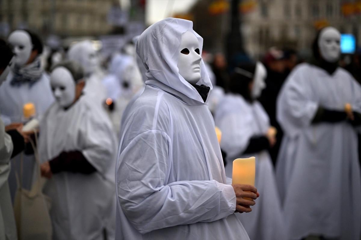 Göstericiler, başkentin sokaklarında beyaz maskeler takarak, ellerinde mumlarla yürüyüş gerçekleştirdiler.