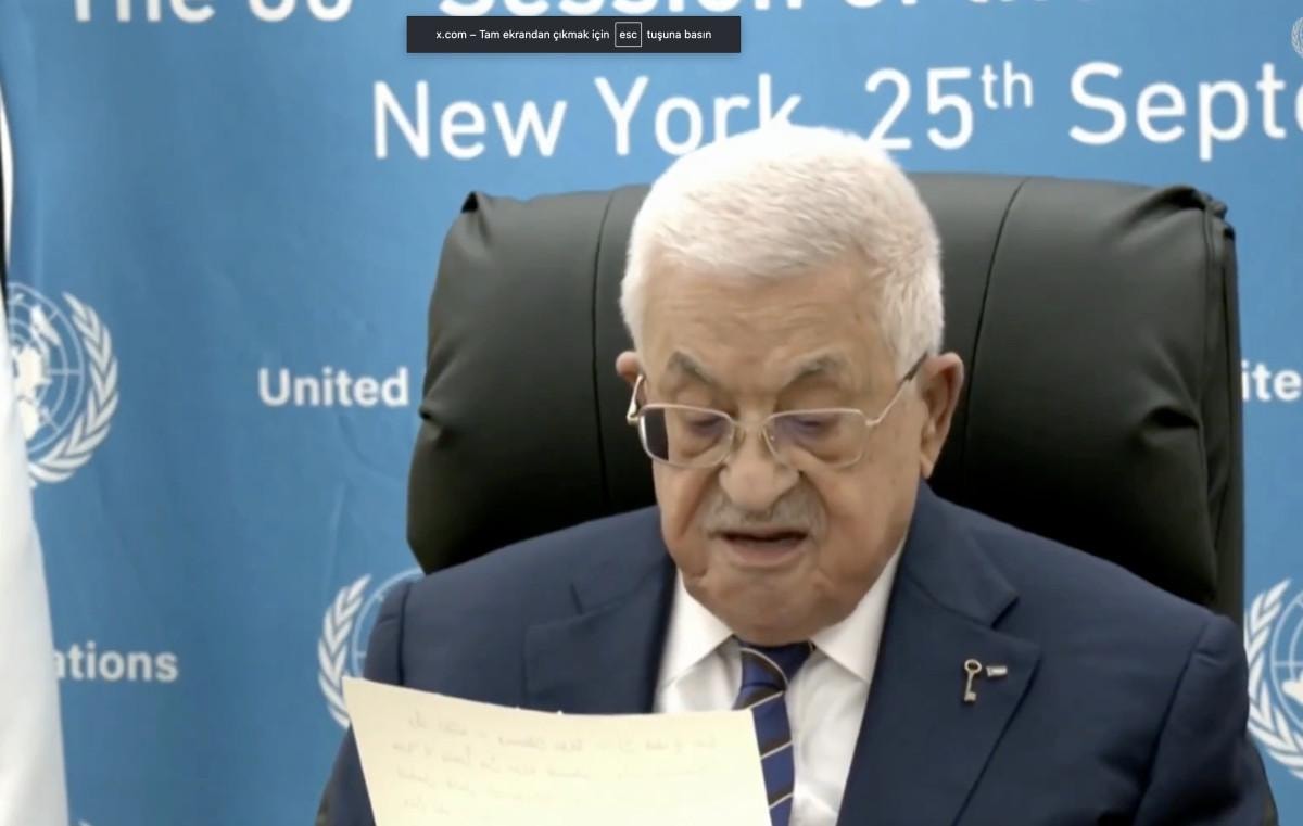 Filistin Devlet Başkanı Mahmud Abbas, Birleşmiş Milletler (BM) 80. Genel Kurulu’na ABD’nin vizesini iptal etmesi nedeniyle video mesaj yoluyla hitap etti.