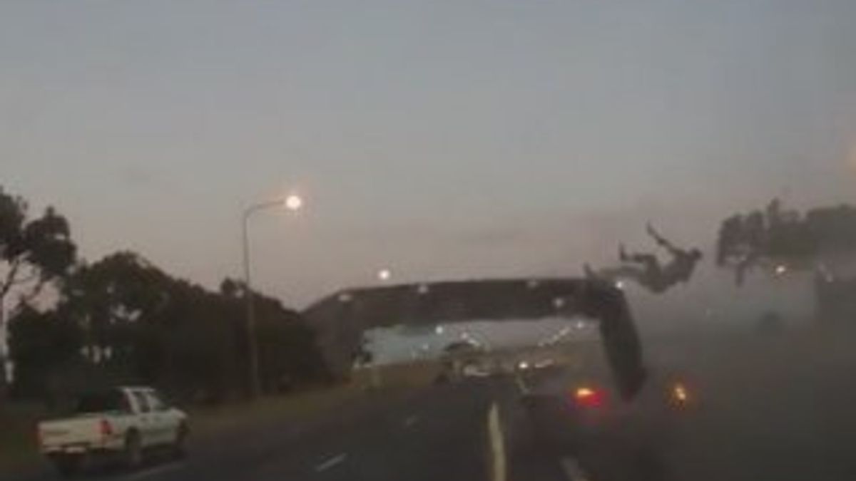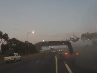 Görüntülerde, çarpmanın şiddetiyle üstü açık otomobilinden birkaç metre yükseğe fırlayan şoför, hızla yere düştü.