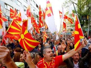 Şimdi de Makedonya'nın başkenti Üsküp'te hükümet binası önündeki protestolarda çekilen bir fotoğraf eylemlerin ve eylemcilerin nasıl sembolize edildiklerine en güzel bir örnek niteliğinde.