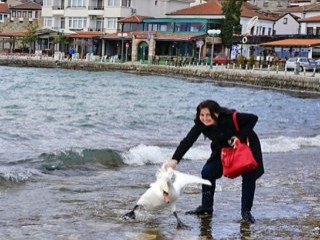 Kadın göldeki kuğuyu boynundan ve kanatlarından çekiştirerek kıyıya çekti ve fotoğraf çektirmeye çalıştı.