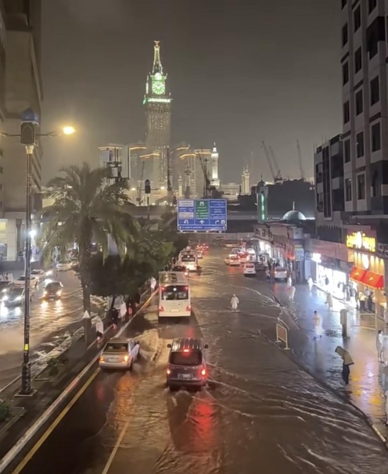 Yüzlerce Müslüman, Mekke'de şiddetli yağmura rağmen ibadetlerini yerine getirdi. Kentte ise araçlar, göle dönen yolda sulara gömüldü.