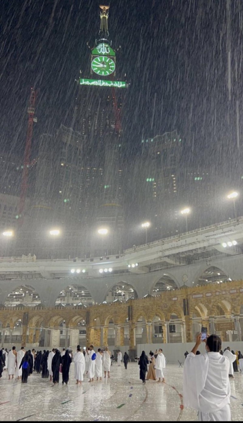 Öte yandan Kabe'nin yer aldığı Mescid-i Haram'da ise yüzlerce Müslüman, olumsuz hava koşullarına rağmen ibadetlerine devam etti.
