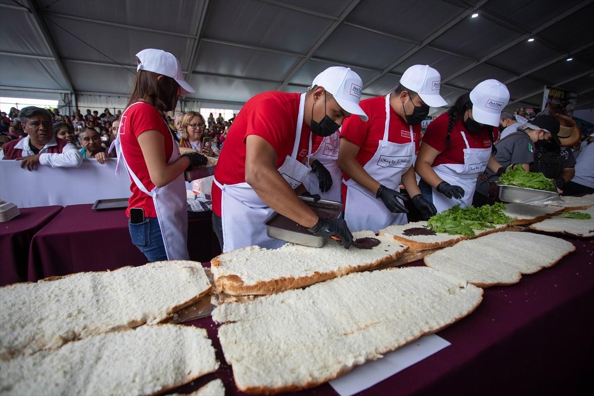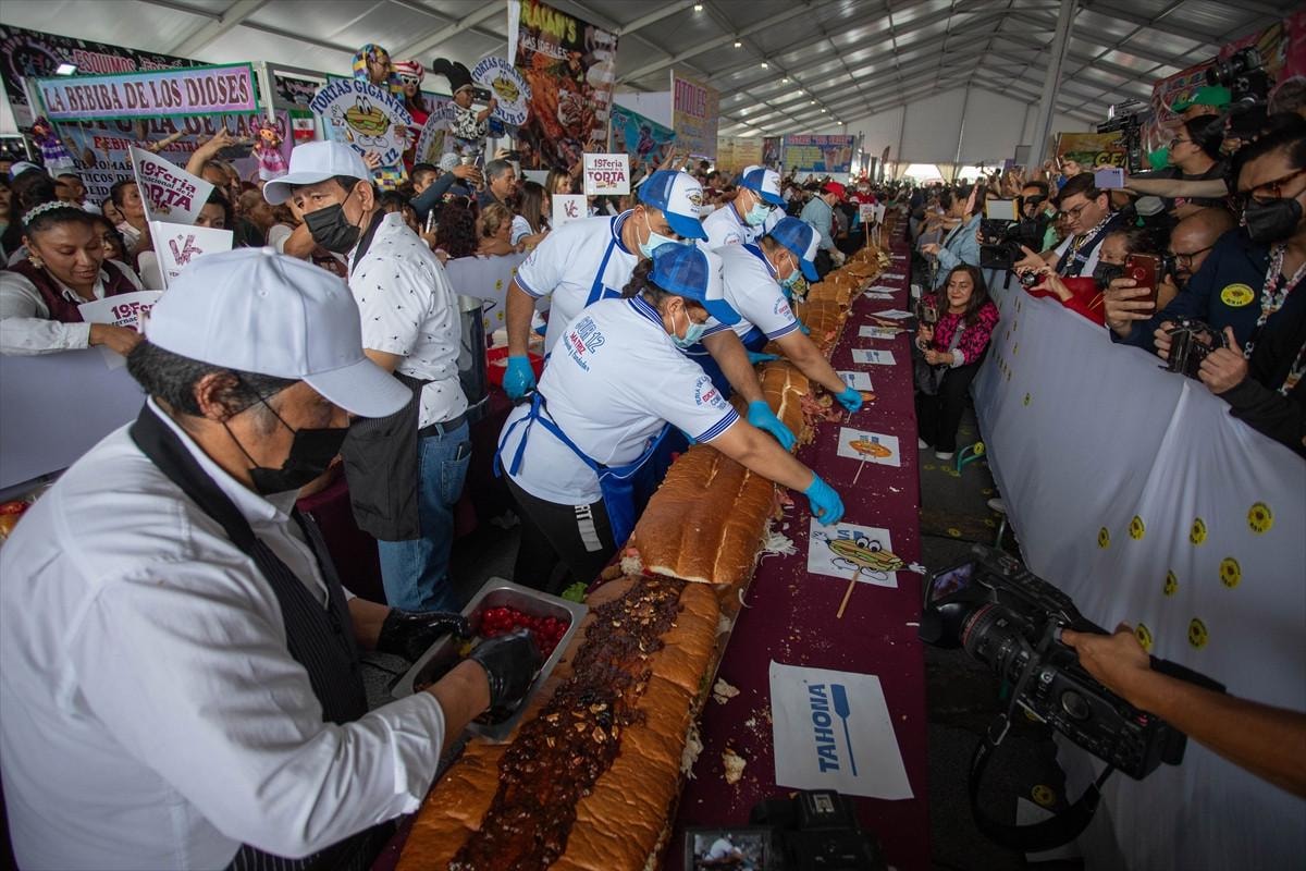 Başkent Meksiko'da, ülkenin çeşitli restoranlarından bir araya gelen çalışanlar, iki dakika on saniye içinde, et ve çeşitli malzemelerle doldurulmuş bu dev Meksika sandviçini hazırlayarak geçen yılın en uzun torta rekorunu kırmayı başardı.