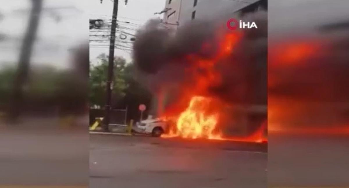 Ülkenin kuzeyindeki Nuevo Leon eyaletinde yer alan San Pedro şehrinde bir araç alev topuna döndü.