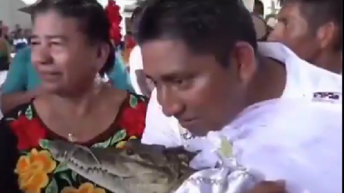 Meksika’nın Oaxaca eyaletinde yer alan San Pedro Huamelula’nın Belediye Başkanı Victor Hugo Sosa Garcia halkına şans, bolluk ve refah getirmesi için Alicia Adriana adlı timsahla evlendi.