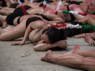 Meksika'nın başkenti Meksiko'da boğa güreşleri protesto edildi. Devrim Anıtı önünde toplanan bir grup, vücutlarına kırmızı boya sürüp uzunca bir süre yerde yatarak eylem yaptılar.