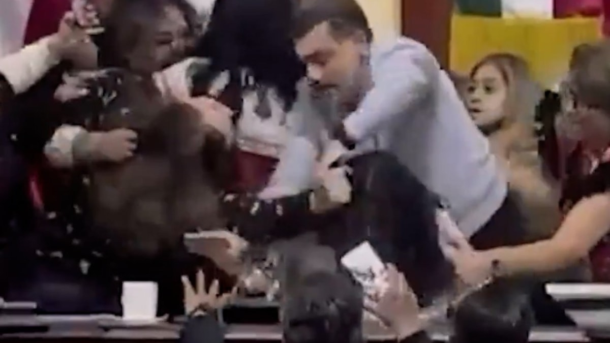 Meksika'nın başkenti Meksiko'da kent meclisi oturumu sırasında iki partiden meclis üyeleri, birbirlerinin saçlarını çekerek kavga ederken yaşananlar kameraya yansıdı.