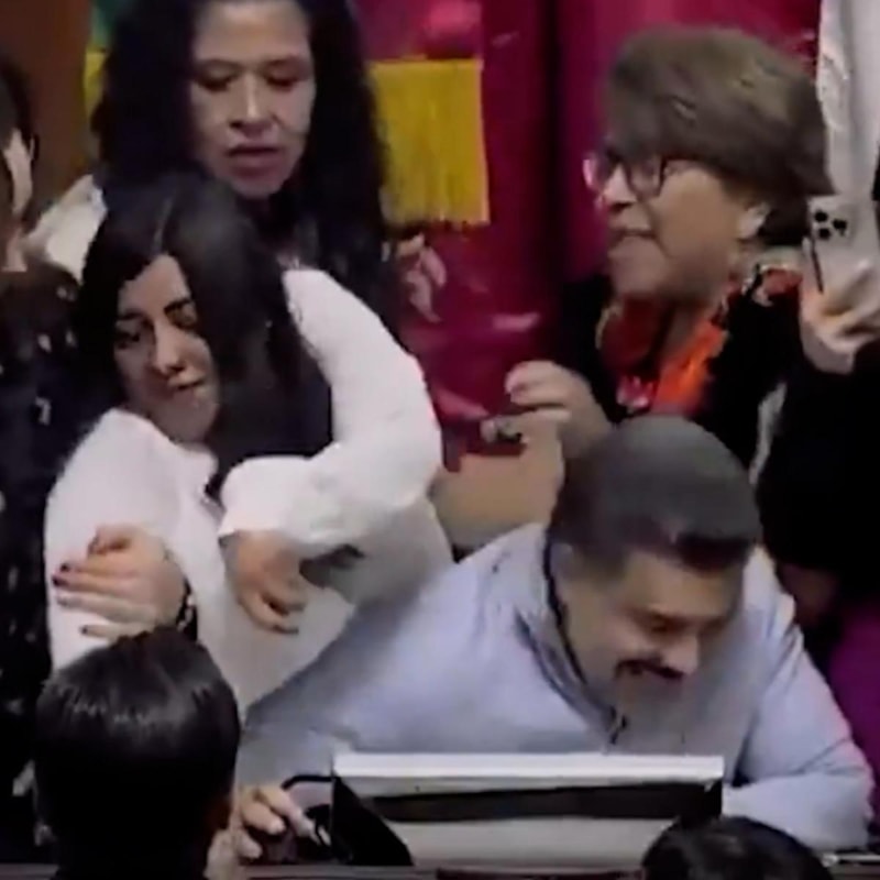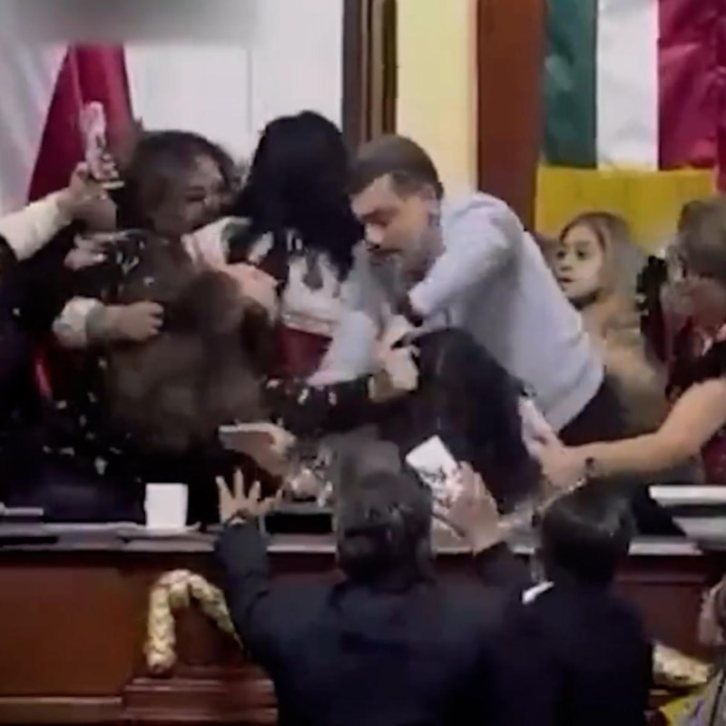 Sağcı Ulusal Hareket Partisi'nden (PAN) kadın temsilciler ile çoğunluktaki solcu Morena partisinin üyeleri arasında arbede çıktı.