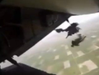 Meksikalı Askerin Paraşüt ipi uçağa takıldı