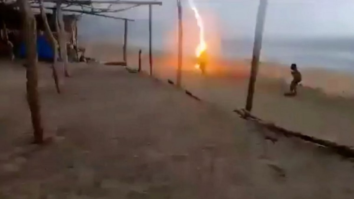 Meksika’nın Michoacan eyaletindeki Aquila şehrinde sahildeki bulunanların üzerine yıldırım düştü. Yıldırımın çarptığı 2 kişi hayatını kaybederken, olay anı yakınlardaki bir kişi tarafından cep telefonuyla anbean kayıt altına alındı.