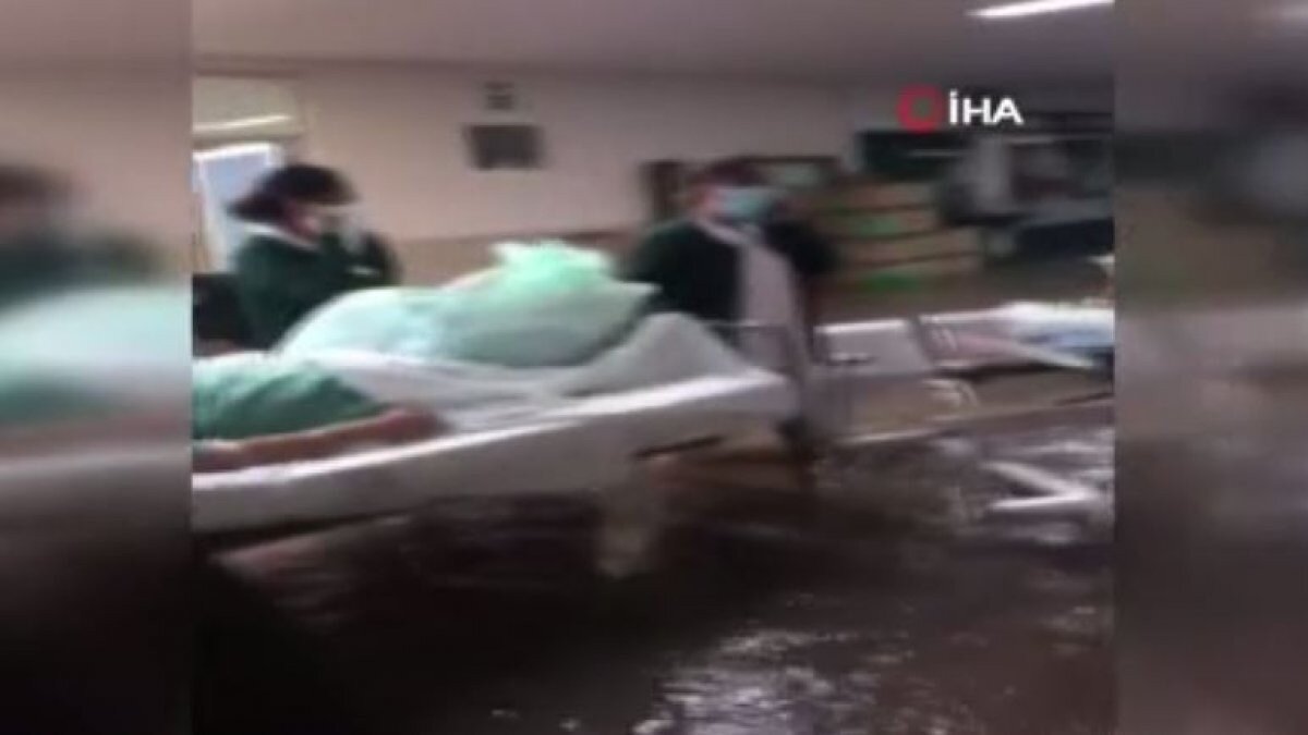 Hastanenin giriş katında biriken suyun 1 metre yüksekliğe ulaştığı aktarılırken, hastaların gece boyu sedyelerle üst katlara taşındığı açıklandı.