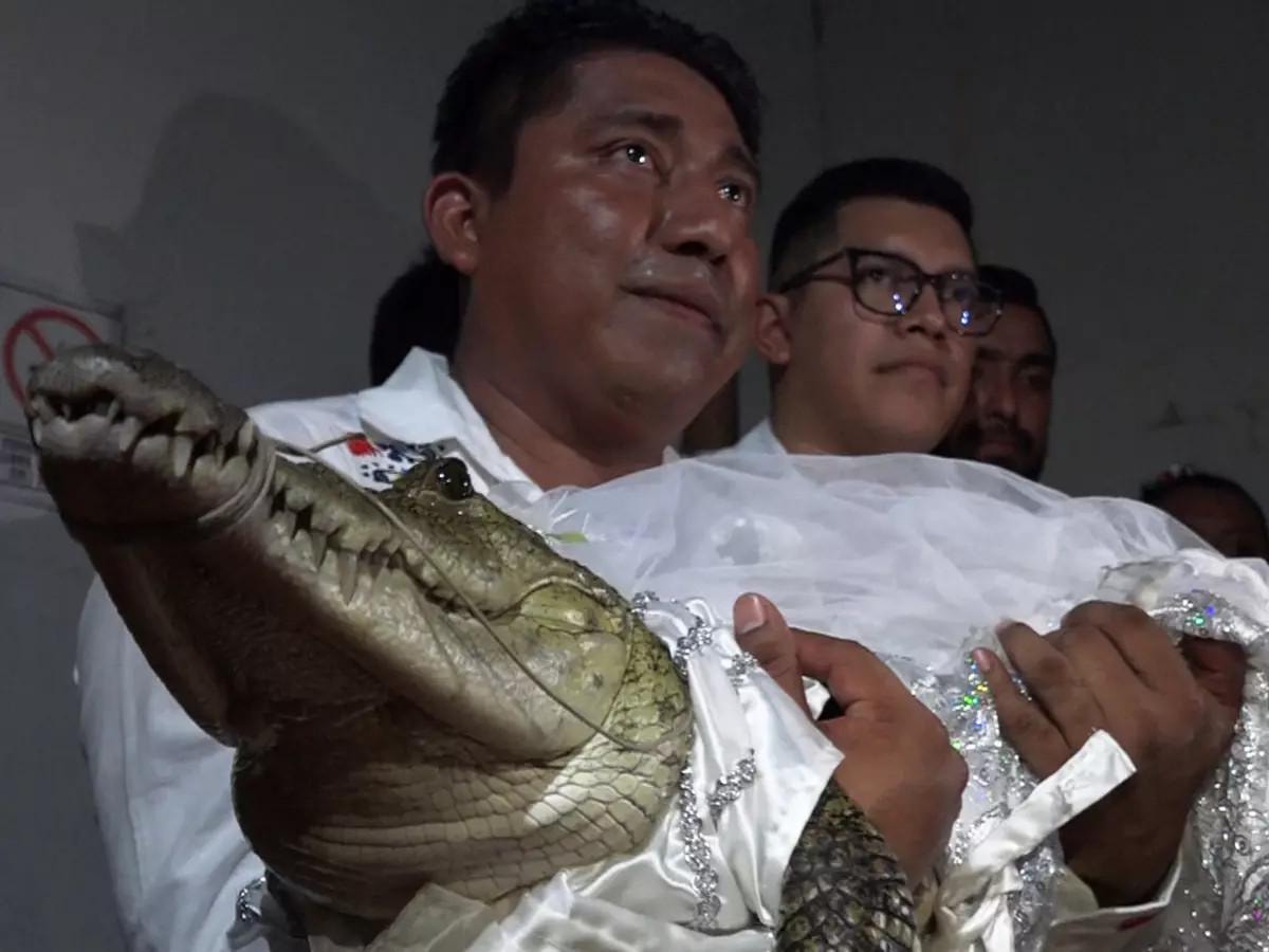 Gutierrez, kasabanın 230 yılı aşkın süredir devam eden geleneği uyarınca bir timsahla sembolik bir evlilik yaptı.