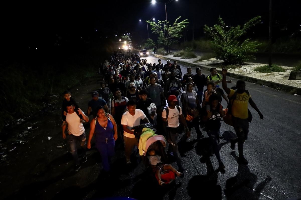 ABD'ye geçme hayaliyle yola çıkan göçmenler, Meksika'nın Tapachula kentinden geçerek ABD sınırına doğru yürüyüşlerine devam ediyor.