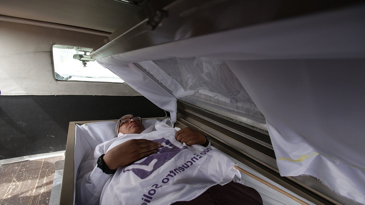 Mayorga, “Halka yardım etmekle ilgilenmeyen politikacıların kayıtsızlığı nedeniyle hayatlarını kaybeden binlerce kişiyi temsil ediyorum. İktidara geldiklerinde halkı unutan yerel ve federal milletvekillerine sesleniyorum, bu tabuttan çıkarak hükümetin ihmali nedeniyle yaşamını yitirenleri ve vatandaşların hayatı ile ilgilenmeyen politikacıları uyarıyorum. Bu tabuttan çıkarak sevdiklerini kaybedenleri anıyorum.” dedi.
