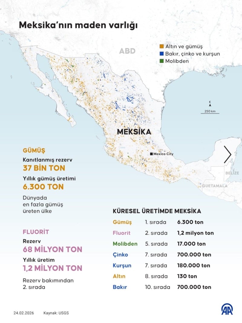 Jalisco Yeni Nesil Karteli elebaşı “El Mencho” lakaplı Nemesio Oseguera Cervantes’in öldürülmesinin ardından şiddet olaylarının yaşandığı Meksika, birçok madenin rezervinde listenin ilk sıralarında yer almasıyla dikkat çekiyor.
