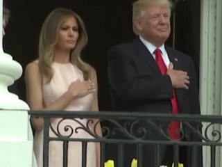 Tören başlamadan önce balkondan selam veren ABD Başkanı Trump ve ailesi, daha sonra ABD'nin ulusal marşını seslendirdi. Ancak ulusal marş sırasında elini kalbinin üstüne götürmeyi unutan ABD Başkanı Trump'ı eşi uyardı.