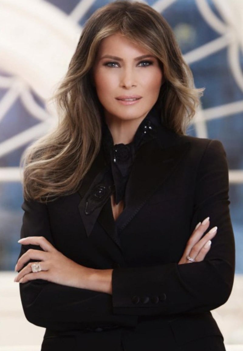 Yeniden Amerika'da başkan seçilen Donald Trump'ın eşi Melania Trump'ın Beyaz Saray'daki resmi portresinde maskülen tarzı dikkati çekti.