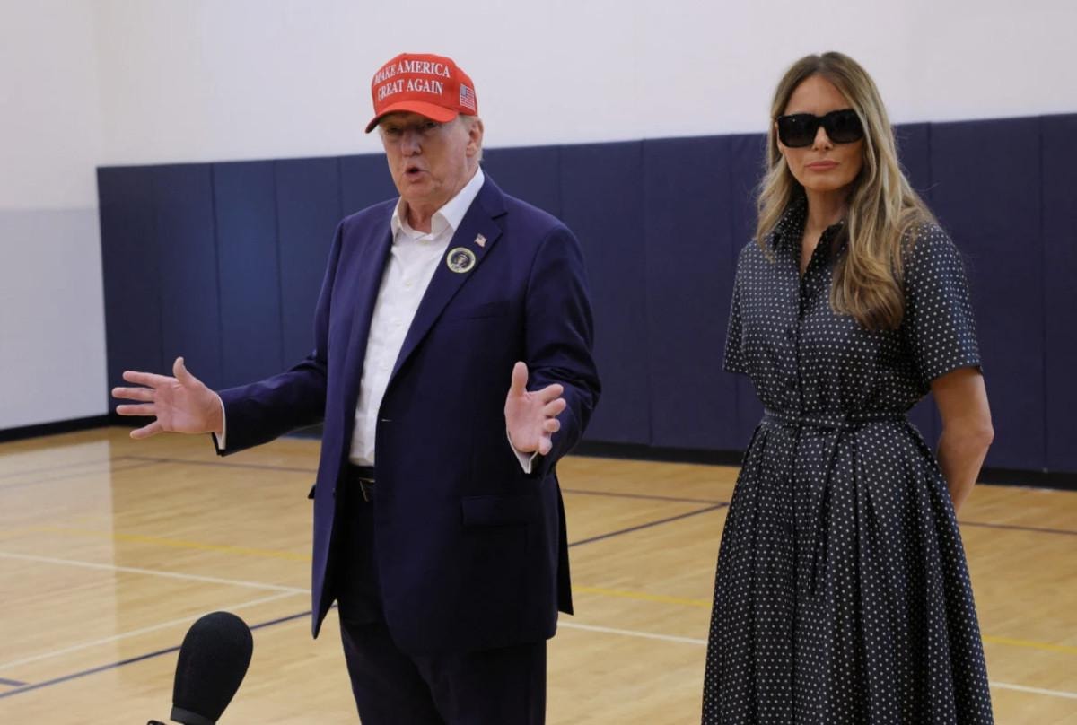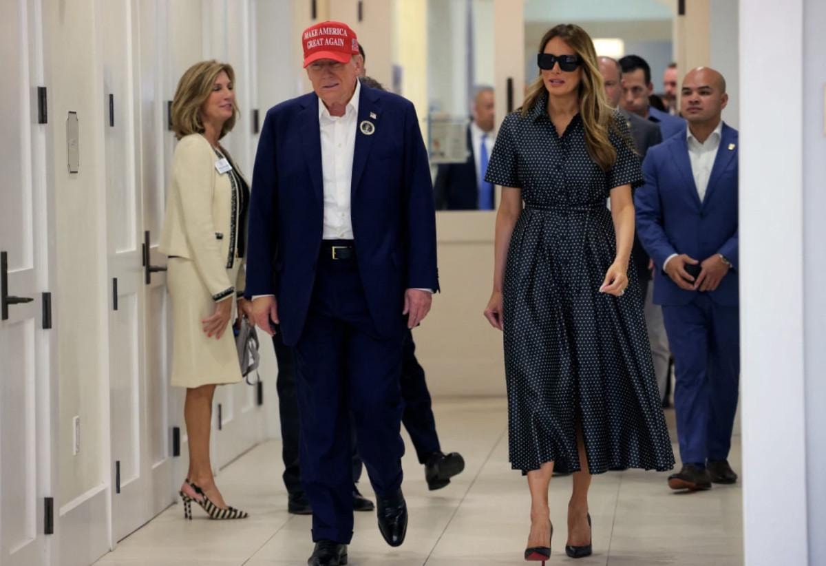Melania Trump'ın Florida'da oy kullandığı sırada kameralara yansıyan görüntüsü, sosyal medyada komplo teorilerini beraberinde getirdi.
