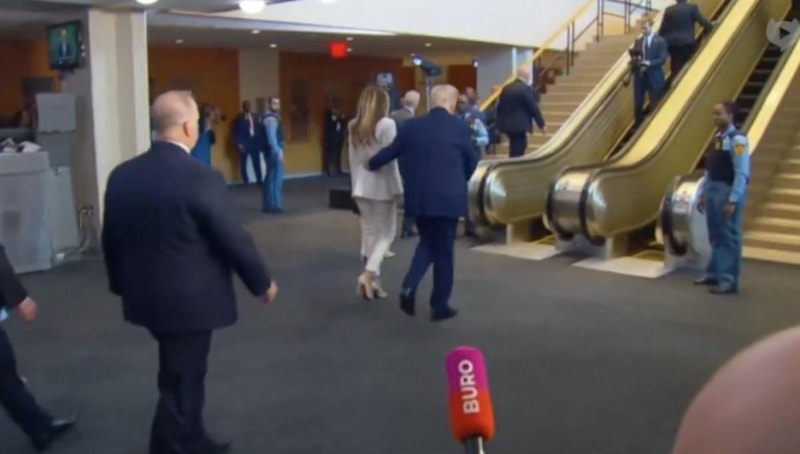 Donald Trump ve Melania Trump'ın BM Genel Merkezi'nde yürüyen merdivene adım attığı anda yürüyen merdiven aniden durdu. O anlar sosyal medyada hızla yayılıp, "Bu bir işaret mi?" yorumları yapıldı.