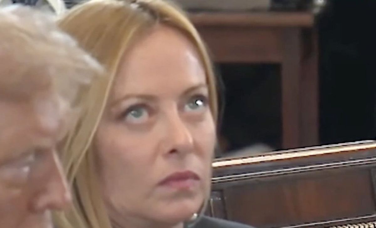 İtalya Başbakanı Meloni, Donald Trump ve Almanya Başbakanı Friedrich Merz'in kendi aralarında konuştukları sırada sergilediği mimikler dikkat çekti.