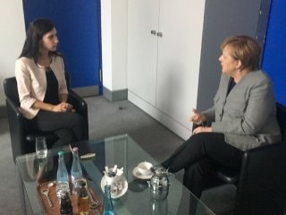 Dilek Mayatürk'ü ofisinde ağırlayan Angela Merkel, Silivri Cezaevi'nde 8 aydır tutuklu bulunan Deniz Yücel'in durumu hakkında bilgi aldı ve onu kurtarmak için söz verdi.