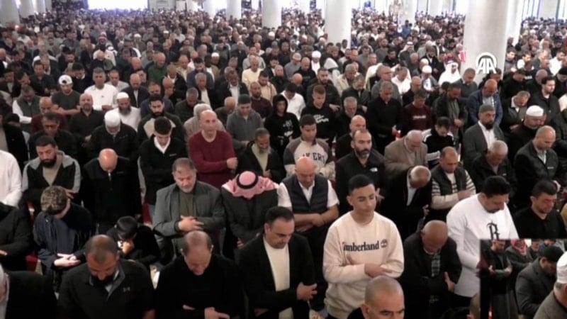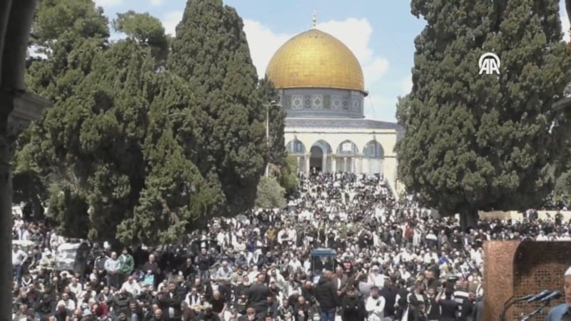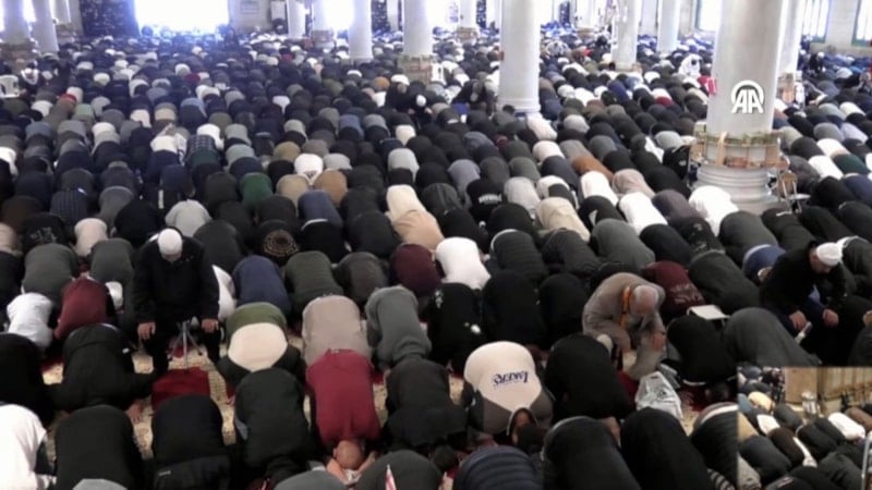 Harem-i Şerif'te kılınan ilk cuma namazında, on binlerce Müslüman Mescid-i Aksa'yı doldurdu.