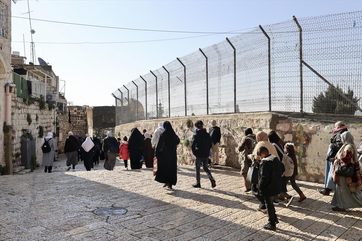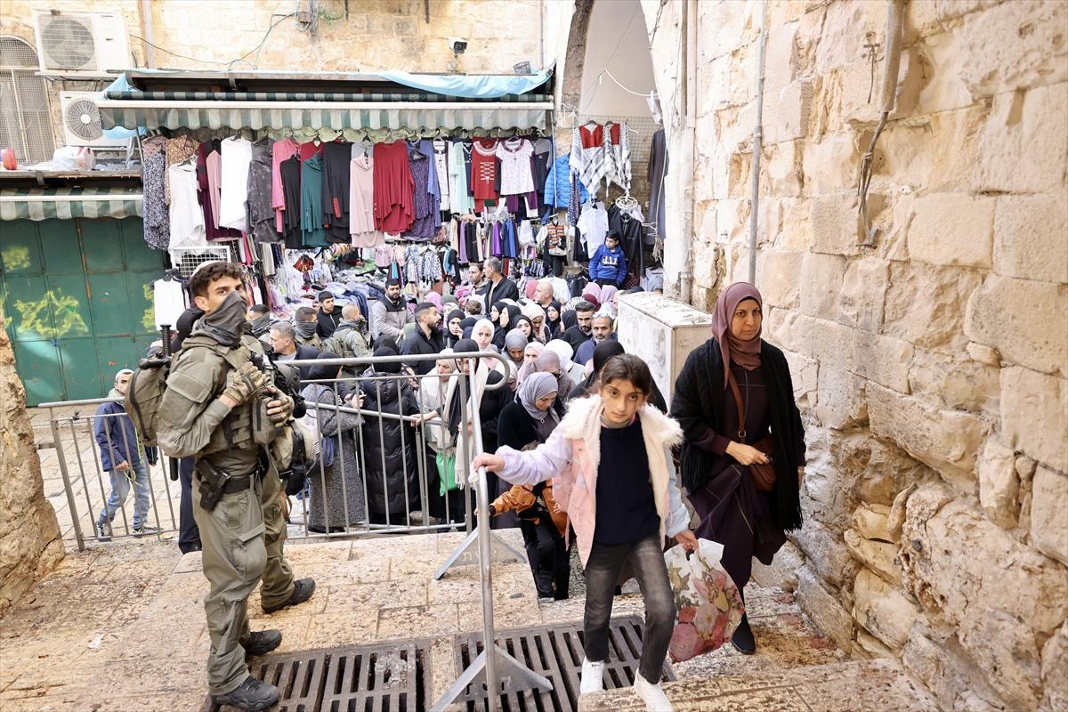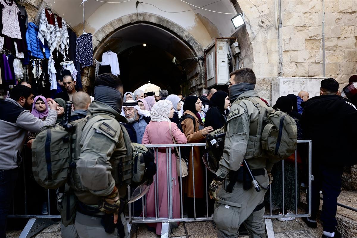 On binlerce vatandaş, sabahın erken saatlerinden itibaren işgal altındaki Batı Şeria ve Kudüs arasındaki askeri kontrol noktalarını geçerek Harem-i Şerif’in yolunu tuttu.
