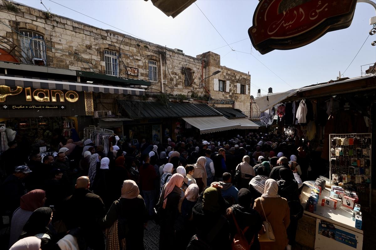 Filistinliler, İsrail’in çıkardığı zorluklar ve engellere rağmen ramazan ayının son cuma namazını kılmak için Mescid-i Aksa'ya akın etti.