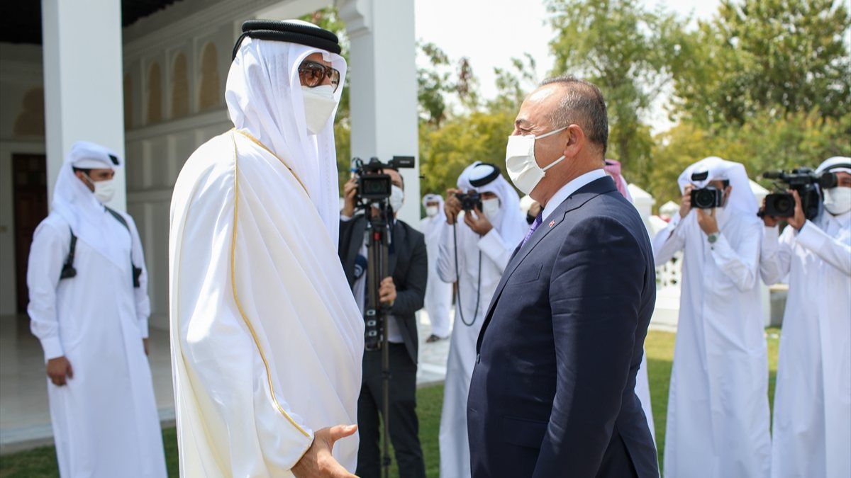Bakan Çavuşoğlu, burada Katar Emiri Şeyh Temim bin Hamed el Sani tarafından kabul edildi.