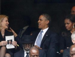 Yanyana oturan Obama ve Thorning-Schmidt uzun süre sohbet etti. Ancak Michelle Obama'nın, sarışın Başbakan ile eşi arasındaki bu samimiyetten pek memnun olmadığı görüldü. Daha sonra First Lady, Obama ile sarışın Başbakan arasına oturdu.