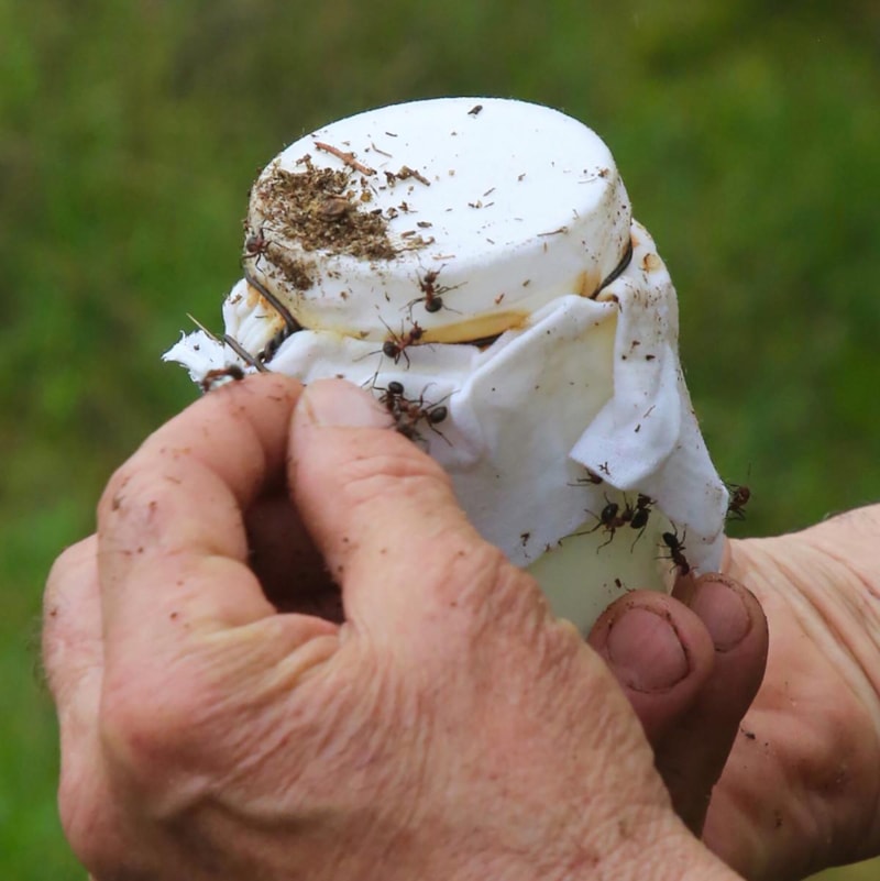 Bilim insanları bu yöntemi yeniden canlandırmak için sütü ısıtıp bir kavanoza döktüler, içine birkaç canlı kırmızı ağaç karıncası eklediler ve kavanozu karınca kolonisine gömdüler.