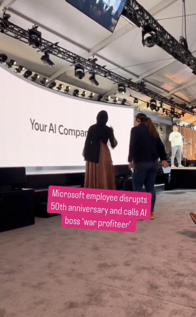 Microsoft AI CEO’su Mustafa Süleyman, şirketin 50. yıl dönümü partisinde konuşma yaptığı sırada protestoyla karşılaştı.