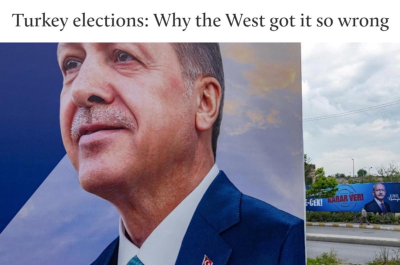 Ayrıca Erdoğan'ın seçmenler üzerindeki etkisinin yanlış değerlendirildiği, anketlerin Kılıçdaroğlu'nu önde gösterdiği anımsatılarak, "Kılıçdaroğlu ve Batı medyasının çoğu bu tür yargılara inandı." ifadesi kullanıldı.