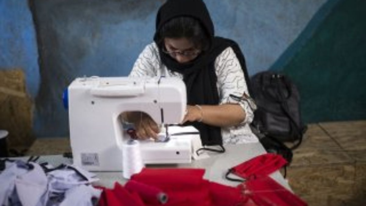 Yunanistan'ın Midilli Adası'ndaki Moria kampında kalan sığınmacılar, koronavirüse karşı maske üretmeye başladı.