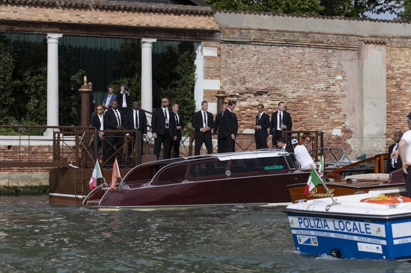 San Giorgio Adası'nda İtalyan polisinin geniş güvenlik önlemleri altında gerçekleşen düğüne çok sayıda ünlü davetli katıldı.