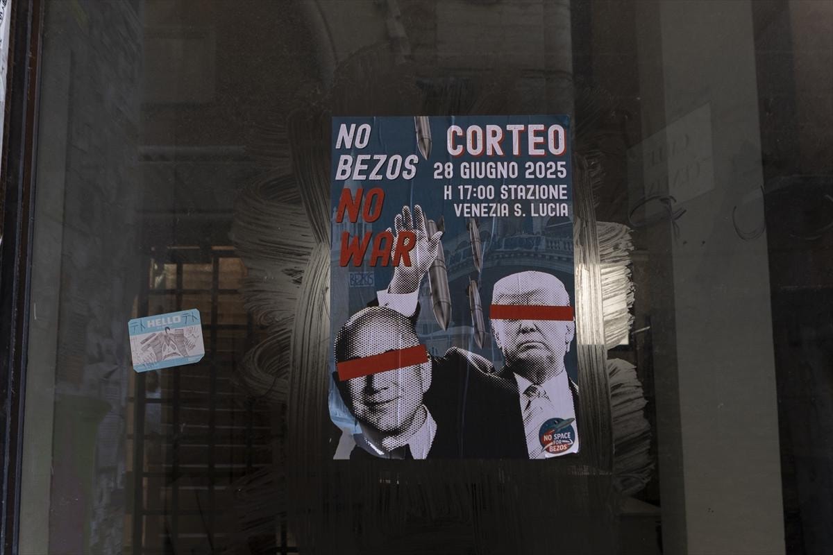 23 Haziran’da Greenpeace Italia ve İngiliz "Everyone Hates Elon (Herkes Elon'dan nefret eder)" isimli grup, yine Aziz Mark (San Marco) Meydanı'nda üzerinde Bezos'un bir fotoğrafı ve İngilizce "Düğününüz için Venedik'i kiralayabiliyorsanız, daha fazla vergi de ödeyebilirsiniz" yazılı 400 metrekarelik bir pankart açmıştı. Polis bunu toplayarak kaldırmıştı.