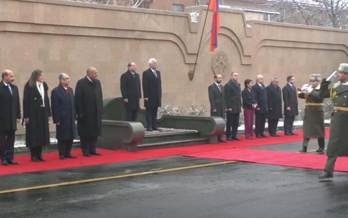 Sisi, başkent Erivan'da Ermeni mevkidaşı Vaagn Haçaturyan tarafından resmi törenle karşılandı.