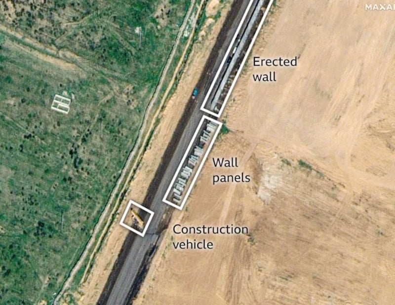 Uydu görüntüleri, Mısır'ın Gazze sınırı boyunca devam eden kapsamlı inşaat çalışmalarını ortaya koydu.