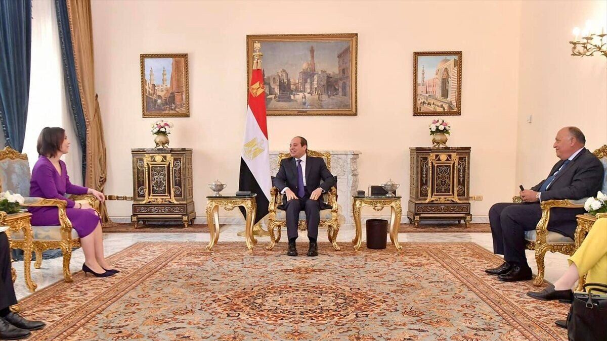 Alman Bakan Baerbock resmi temaslarda bulunmak üzere bugün Mısır’a geldi. Mısır Cumhurbaşkanı Abdulfettah es-Sisi, Bakan Annalena Baerbock’u makamında kabul etti.