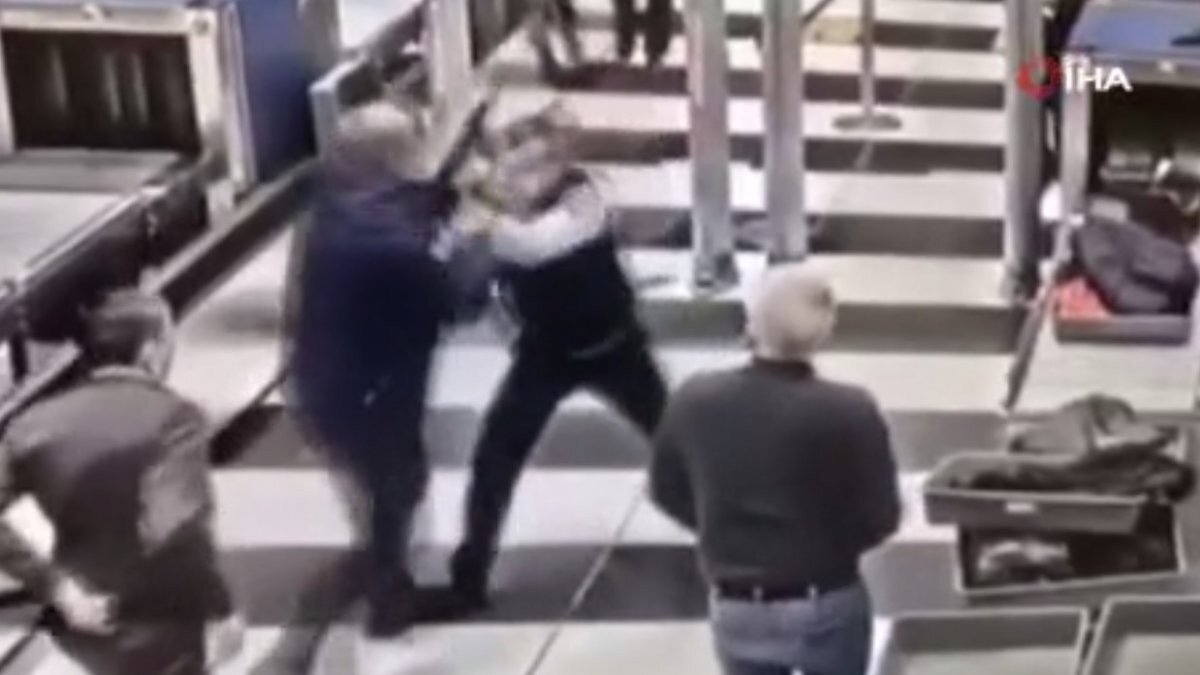 Ancak yolcu, güvenlik görevlisine saldırarak, yumruk attı.
