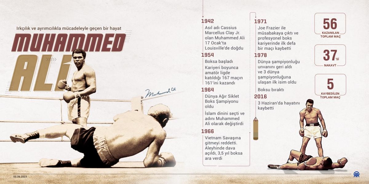 Spor dünyasında "tüm zamanların en büyüğü" olarak anılan, ömrünü ırkçılık ile ayrımcılıkla mücadeleye adayan unutulmaz boksör ve Müslüman aktivist Muhammed Ali vefatının 7'nci yılında anılıyor.