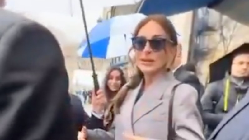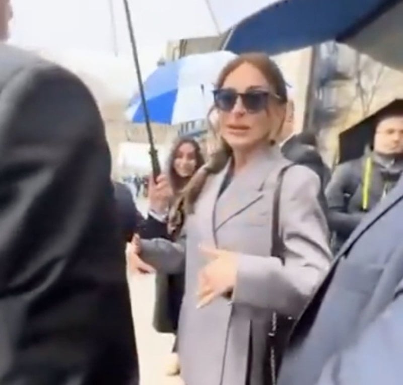 Bir buluşması için otelden korumaları ile çıkış yapan Aliyeva, beklemediği bir isimle karşılaştı.