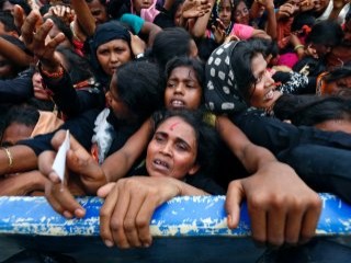 420,000 Rohingya Müslümanı komşu Bangladeş'e kaçtı ancak Rakhine'de kalanlar yiyecek, su ve diğer ihtiyaçlardan yoksun olarak güvenlik kuvvetlerinden saklanmaya çalışıyorlar.