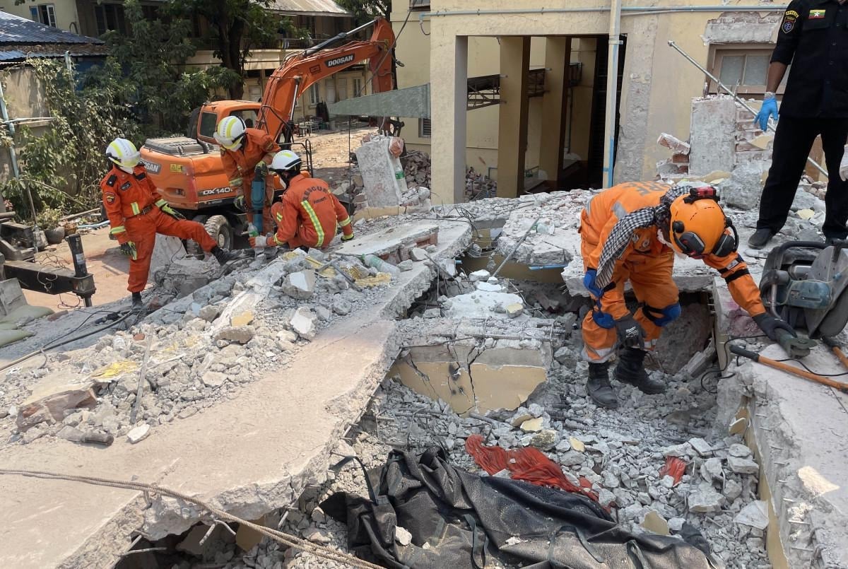 Myanmar'da Cuma günü meydana gelen 7.7 ve 6.4 büyüklüğündeki depremlerin ardından enkaz altındakileri arama kurtarma çalışmaları sürüyor.