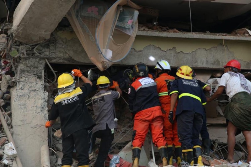 Myanmar'da meydana gelen 7.7 büyüklüğündeki depremin ardından, 60 saatlik yoğun arama kurtarma çalışmalarının sonucunda bir kadın enkaz altından sağ çıkarıldı.
