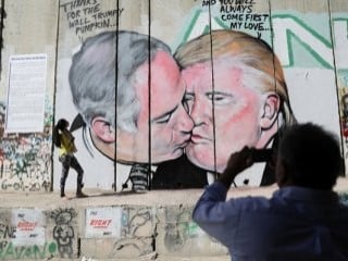 İsrail yönetimin Batı Şeria'ya ördüğü İsrail bariyeri olarak kullanılan duvar Avustralyalı graffiti sanatçısı Lushsux tarafından protesto edildi. Duvara işlenen graffitide ABD Başkanı Donald Trump ve İsrail Başbakanı Benjamin Netanyahu'nun öpüşmesi resmedildi.