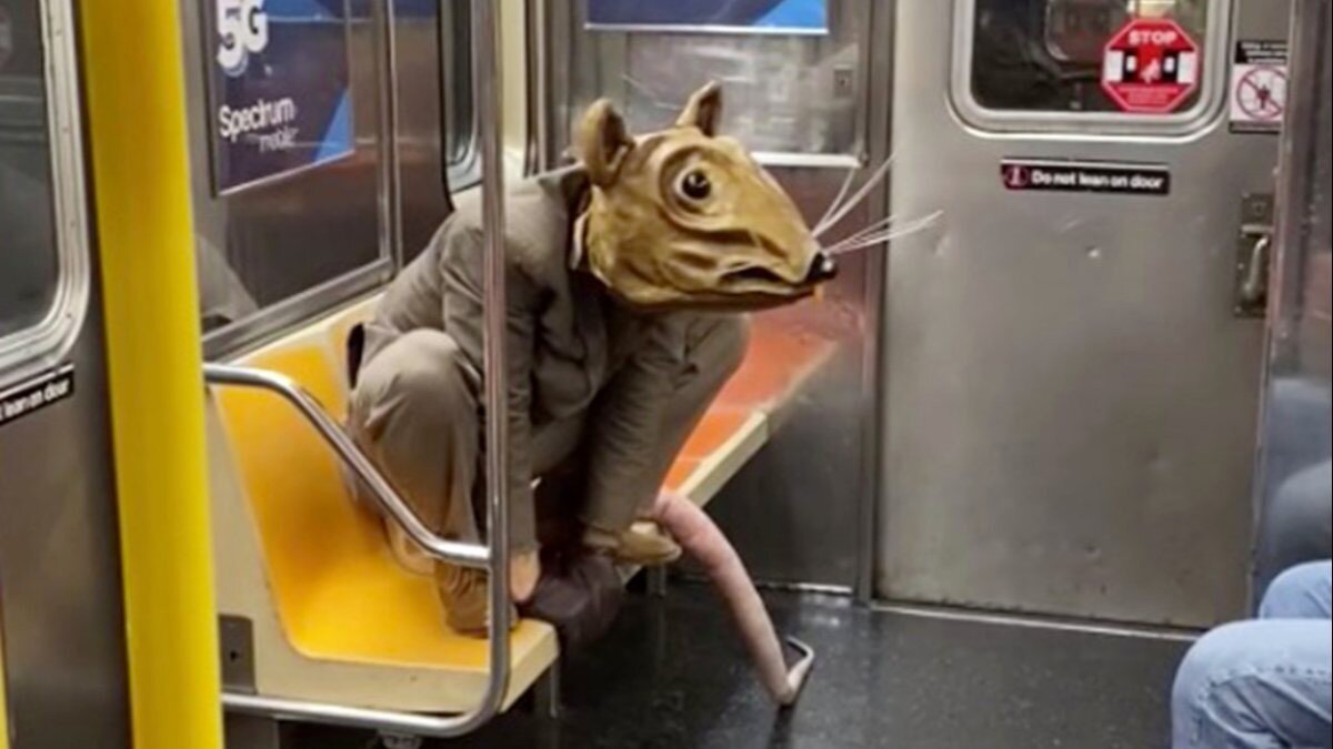 Fare kostümünü giyen Lyons, metroya ellerinin ve ayaklarının üzerinde yürüyerek bindi.