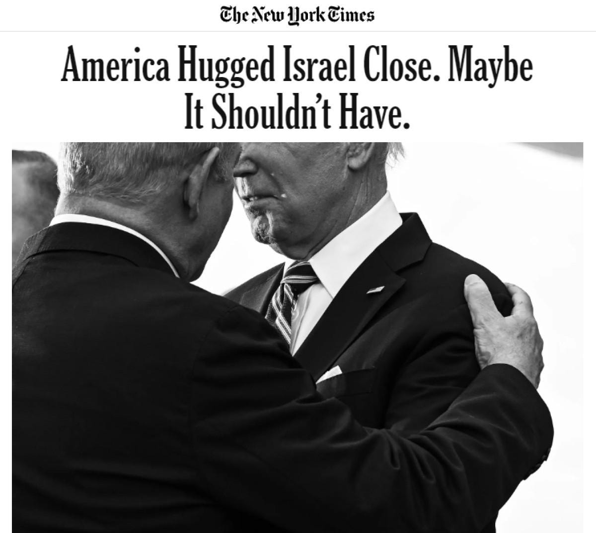 New York Times gazetesinde yayınlanan "Amerika, İsrail'i yakından kucakladı. Bu olmamalıydı." başlıklı yazıda bu görüntüye karşı çıkıldı.