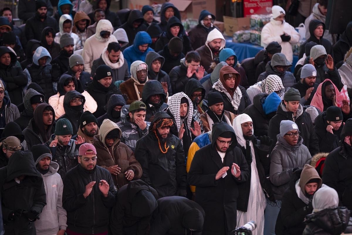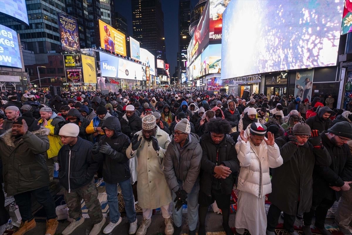 Times Meydanı gibi dünyanın en işlek noktalarından birinde gerçekleştirilen bu toplu ibadet, çevrede bulunan turistlerin ve New Yorkluların dikkatini çekti.